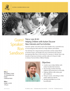 Fierce, Love & Art: Helping Children with Autism Discover New Interests and Fun Activities Dynamic speaker and autism expert, Ron Sandison has a powerful story of overcoming the odds and loves to help children and families. You will enjoy his compassionate presentation and his unique blend of wisdom, humor, and insight. His story is featured […]